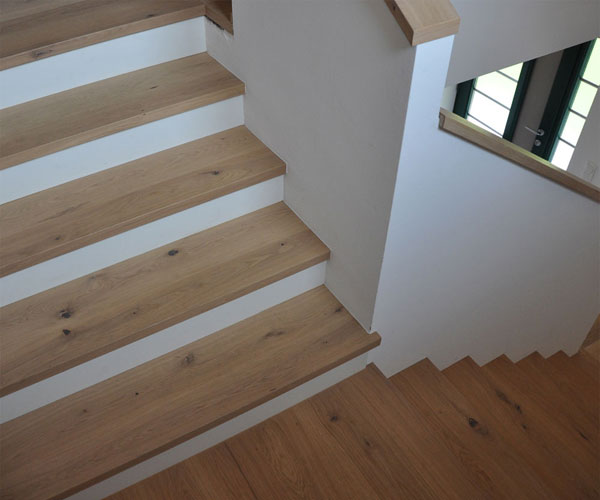 …denn die große Auswahl an Holzarten, Sortierungen und Veredelungen – bekannt aus unserem Parkettsortiment – ist auch für jede gewünschte Treppe erhältlich und sorgt für ein harmonisches Gesamtbild in Ihrem Zuhause.