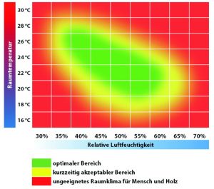 Bei längerfristigen Abweichungen kann es zu gesundheitlichen Beeinträchtigungen und in Bezug auf Holzfußböden/Parkett zu übermäßigen Veränderungen von deren Erscheinungsbildern, wie zum Beispiel größeren Verformungen,