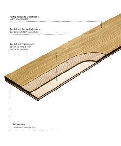 welche durch diverse weitere Oberflächenbehandlungen mit natürlichen Farbölen oder Versiegelungen erweitert wird. Auch die Sortierung bestimmt die Wirkung des Bodens in hohem Maß und setzt individuelle Akzente.