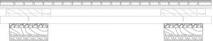 Aufbau: Sperrholz diagonal verlegt, 2 Lastträger jeweils eingeschnitten und rechtwinkelig verlegt, Elastomerpad, Auflager, Elastikpad